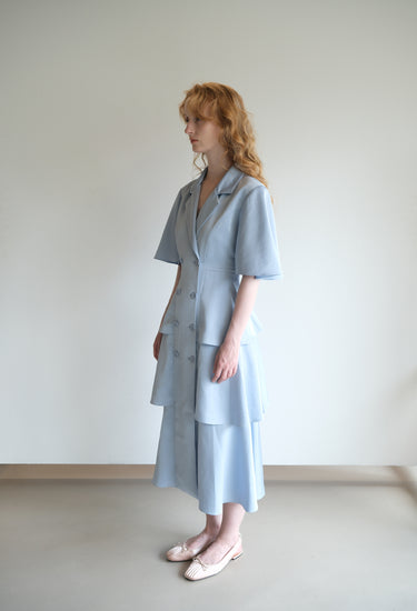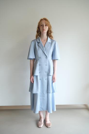 Introducing our dreamy, flared dress made from a glossy fabric that captures the essence of “YUNSEUL”—a Korean word that beautifully describes the shimmering effect of sunlight dancing on rippling summer waves.